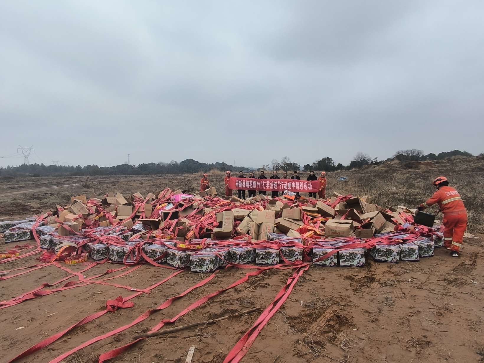 澡下鎮執法大隊聯合縣應急管理局,縣公安隊,縣執法隊在龍溪村,嚴厲打擊非法儲存煙花爆竹,做到及時轉運,消除安全隱患