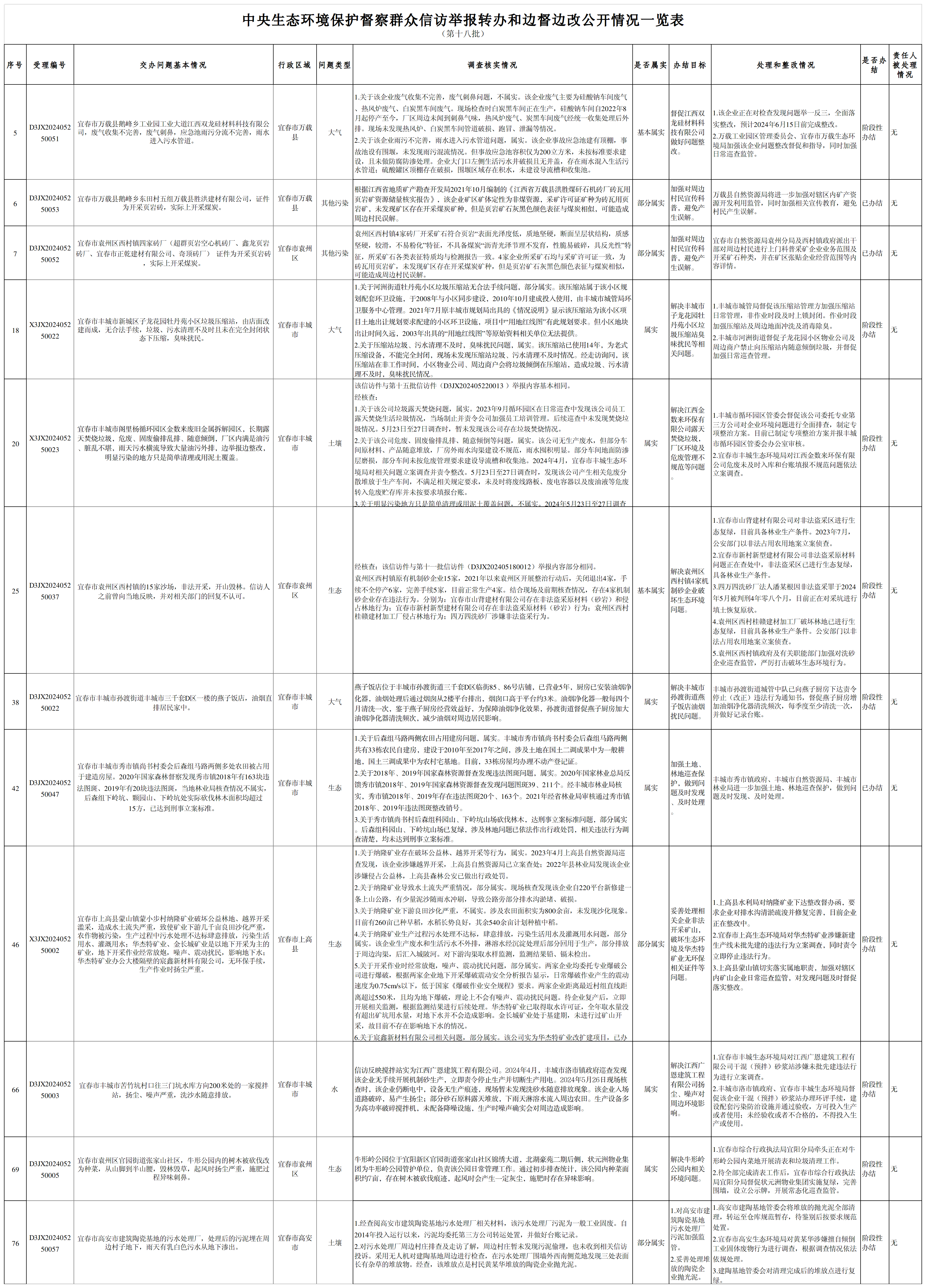 中央生態(tài)環(huán)境保護(hù)督察群眾信訪舉報轉(zhuǎn)辦和邊督邊改公開情況一覽表(第十八批)