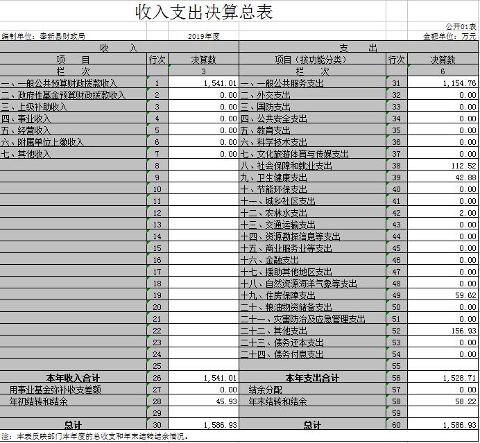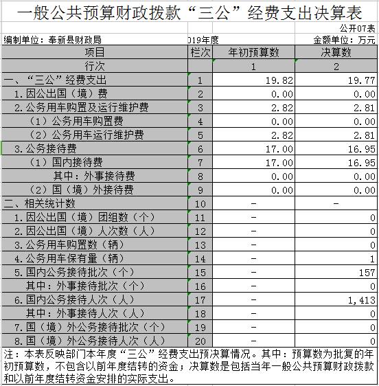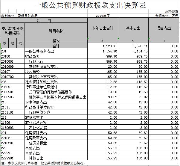 奉新縣財政局2019年度部門決算