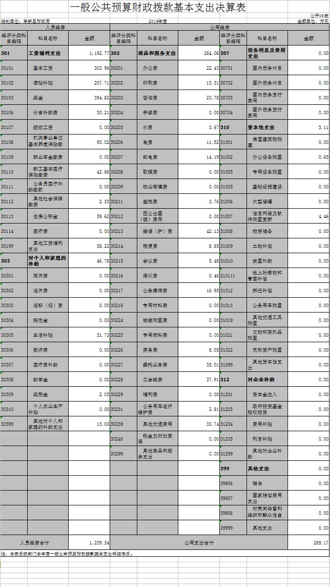 六、一般公共預算財政撥款基本支出決算表