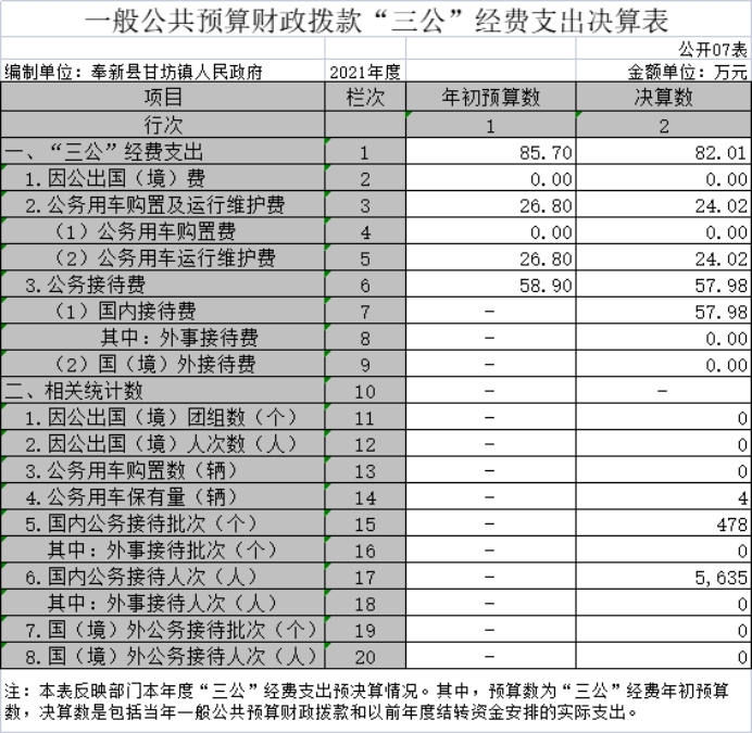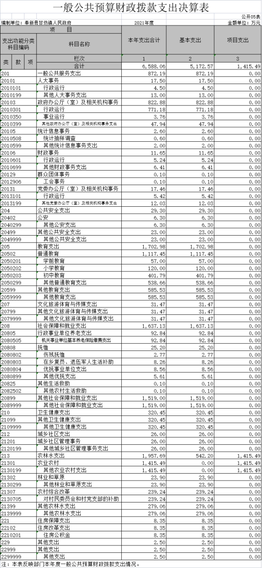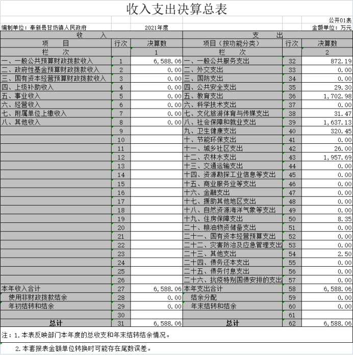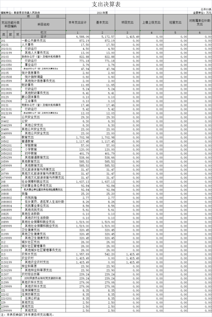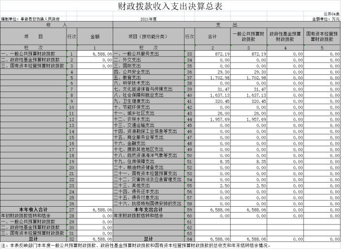 奉新縣甘坊鎮人民政府2021年度部門決算