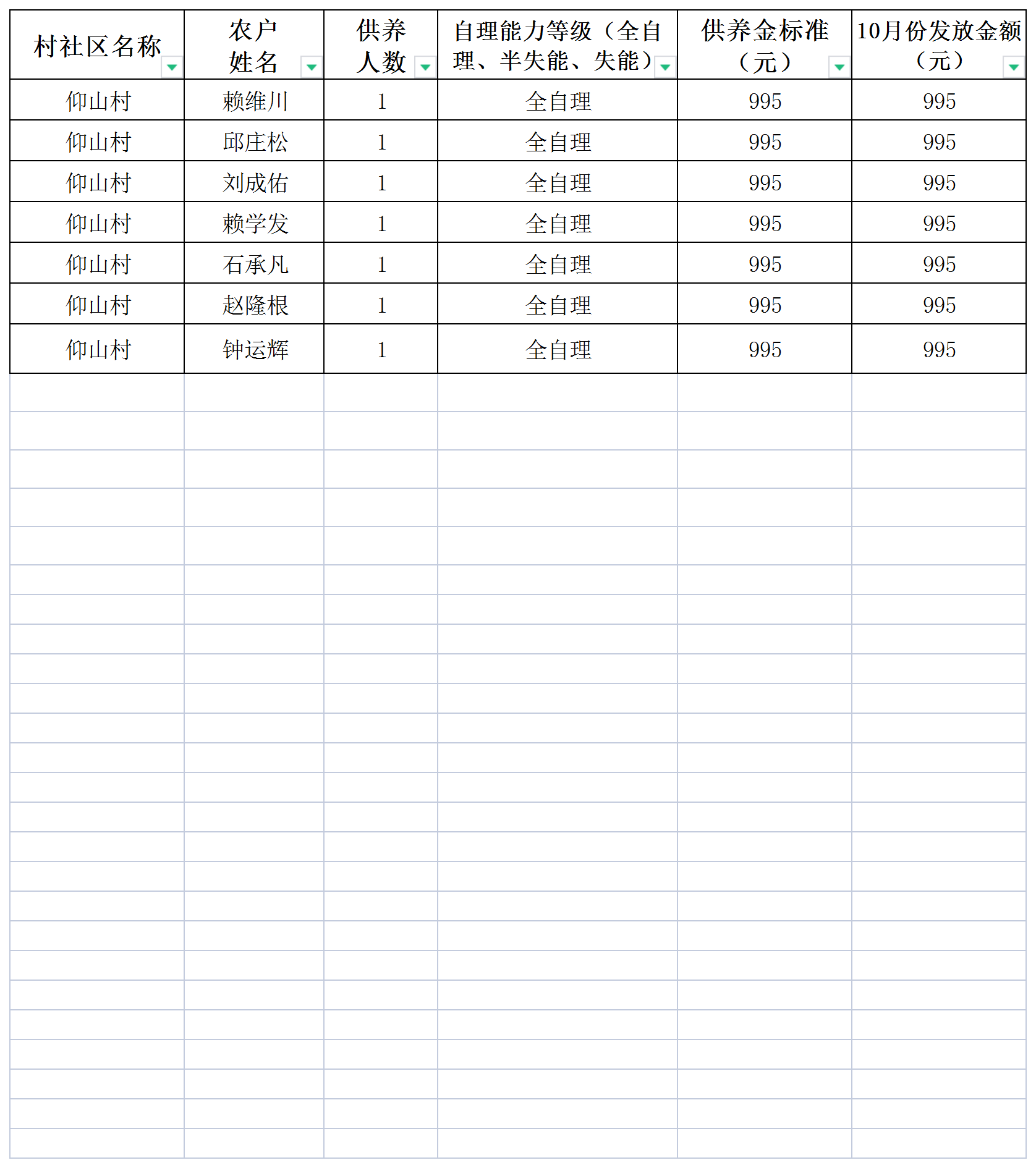 【社會救助】2025年11月特困補助發放表