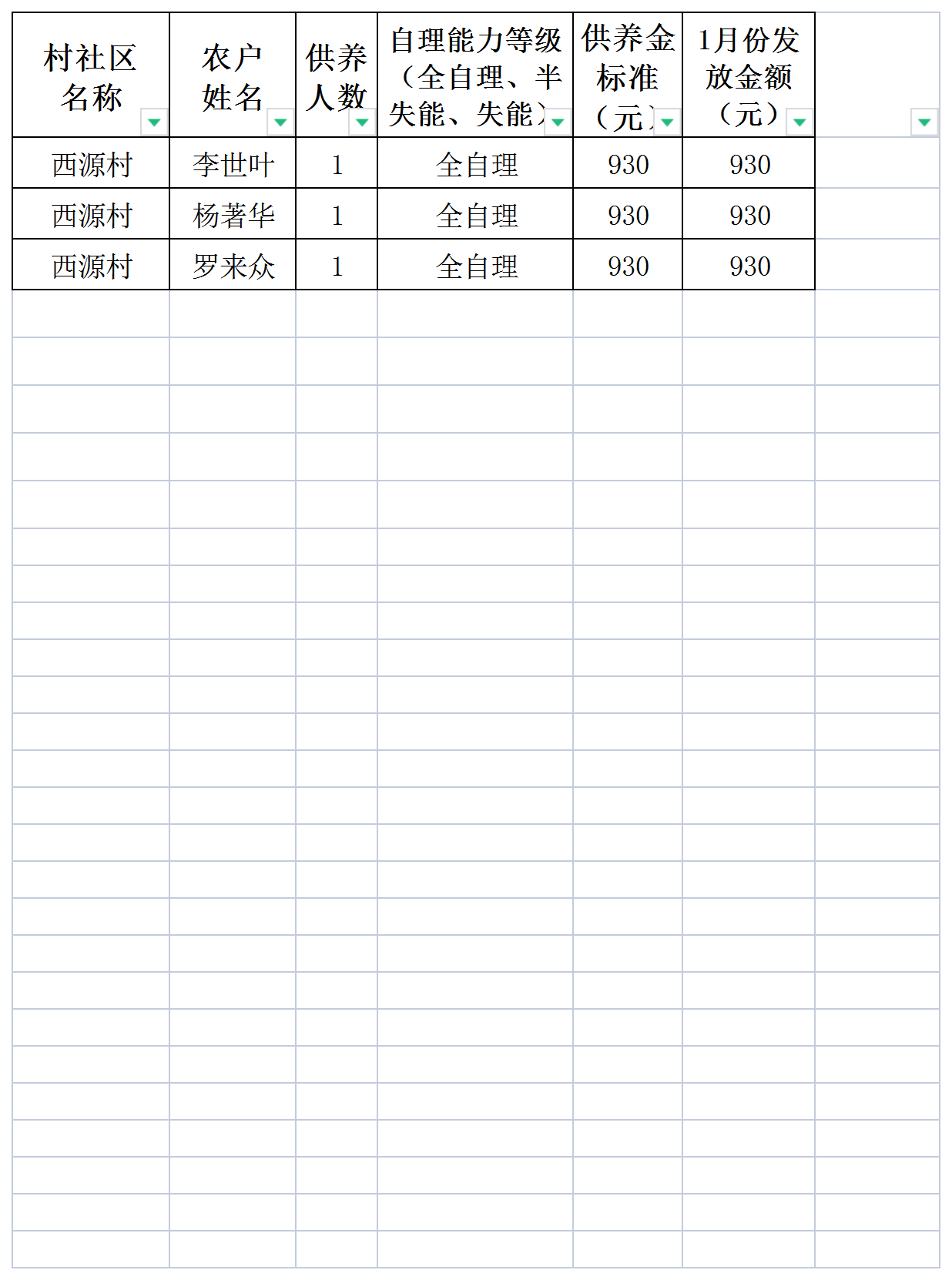 【社會救助】2025年7月特困補助發(fā)放表