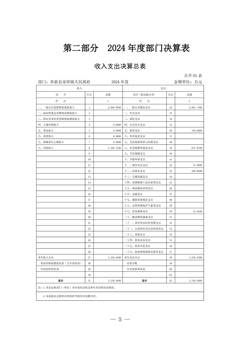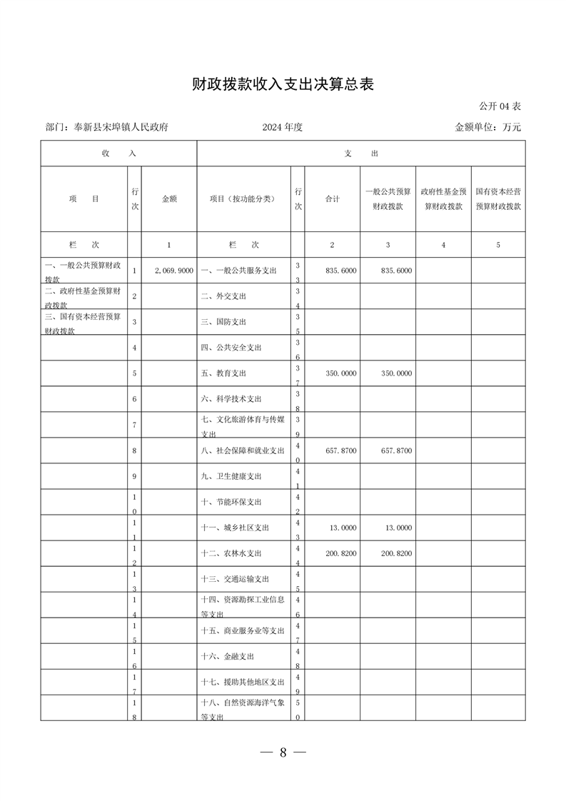 奉新縣宋埠鎮人民政府2024年度部門決算