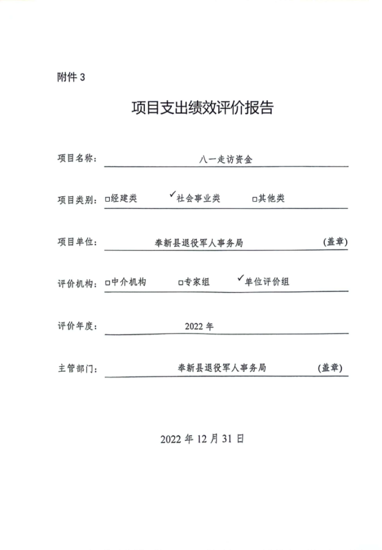 我部門今年在縣級部門決算中反映八一走訪慰問經費項目績效自評情況。