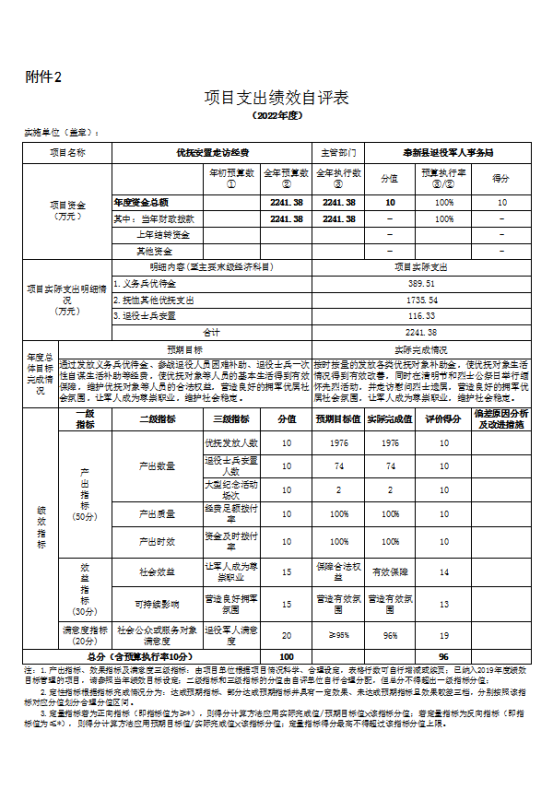 (一)績效評價目的、對象和范圍。了解2022年優撫安置資金的使用和效益情況,為預算績效管理和下年度預算安排提供決策參考。