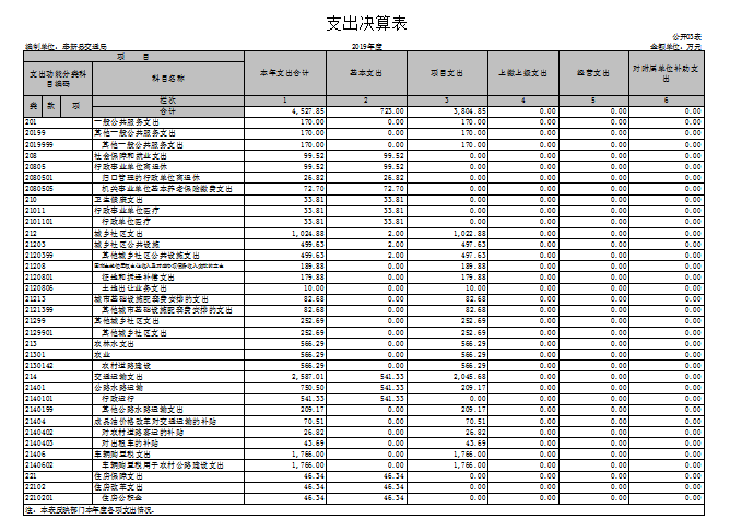 本部門2019年度支出總計4527.85萬元,其中本年支出合計4527.85萬元,較2018年增加977.61萬元,增長27.54%,主要原因是:工程項目、對企業的補助增加;年末結轉和結余0萬元,較2018年增加0萬元,增長0%。