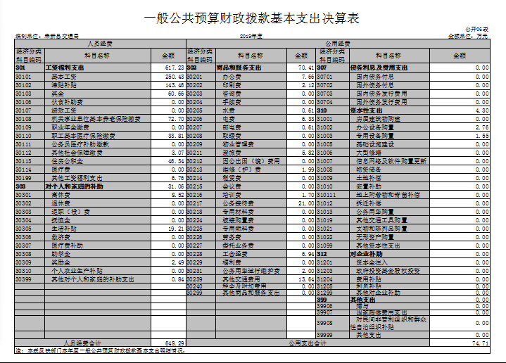 (一)工資福利支出617.23萬元,較2018年減少78.58萬元,下降11.29%,主要原因是:退休人員增加,人員調離。