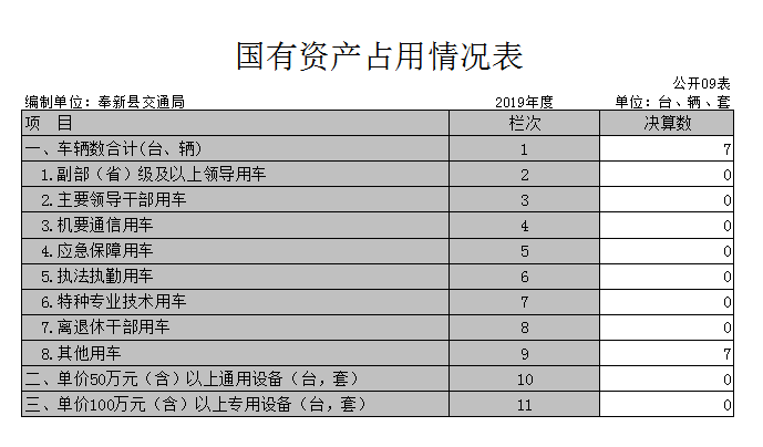 截止2019年12月31日,本部門國有資產占用情況見公開09表《國有資產占用情況表》。其中車輛中的其他用車主要是道路養護用車。