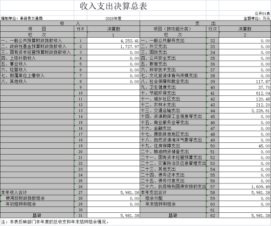 納入本套部門決算匯編范圍的單位共1個,包括:奉新縣交通運輸局。