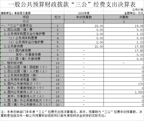 “三公”經費:指各部門用一般公共預算財政撥款安排的因公出國(境)費、公務用車購置及運行費和公務接待費。其中,因公出國(境)費指單位公務出國(境)的住宿費、旅費、伙食補助費、雜費、培訓費等支出;公務用車購置及運行費指單位公務用車購置費及租用費、燃料費、維修費、過路過橋費、保險費、安全獎勵費用等支出;公務接待費指單位按規定開支的各類公務接待(含外賓接待)支出。