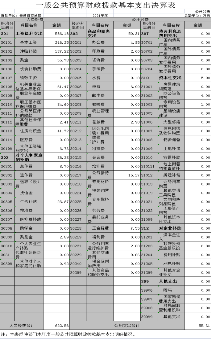 納入本套部門決算匯編范圍的單位共1個,包括:奉新縣交通運輸局本級。