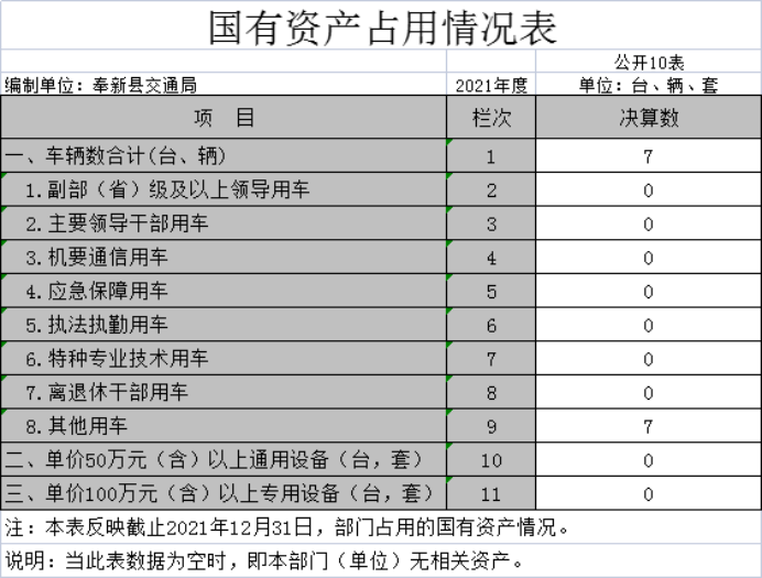 截止2021年12月31日,本部門(單位)國有資產占用情況見公開10表《國有資產占用情況表》。其中車輛中的其他用車主要是道路養護與交通執法用車。