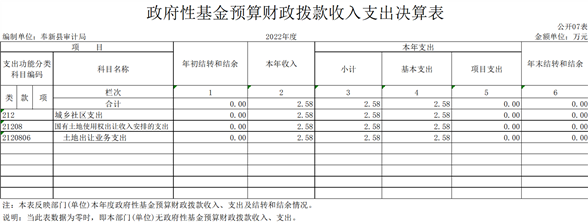 七、政府性基金預(yù)算財(cái)政撥款收入支出決算表