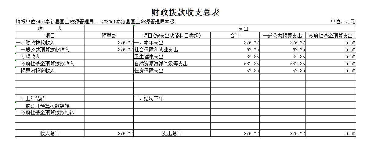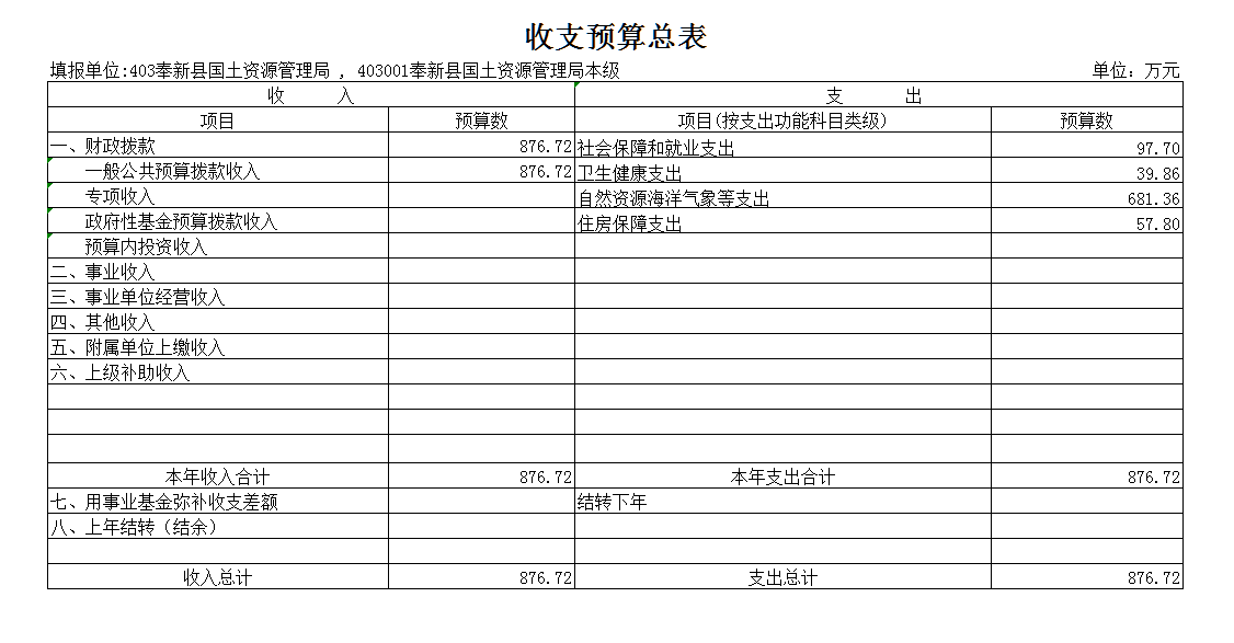 奉新縣國土資源局2019年部門預算情況說明