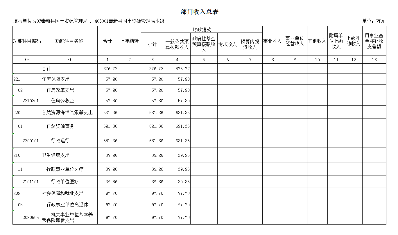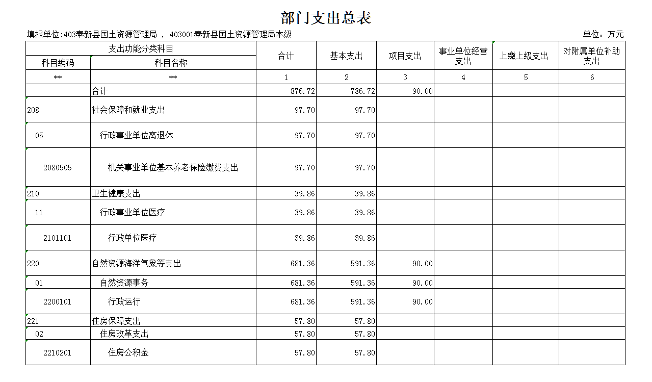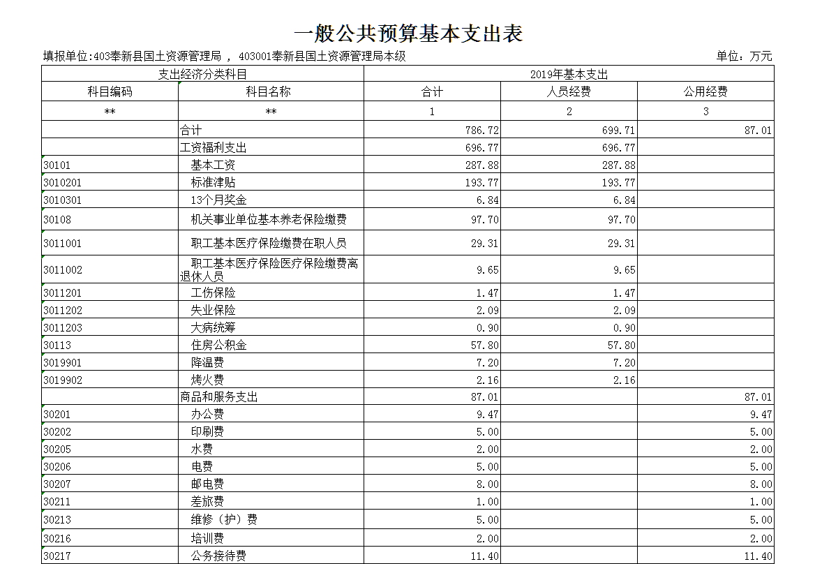 第三部分 奉新縣國土資源局2019年部門預算表