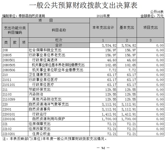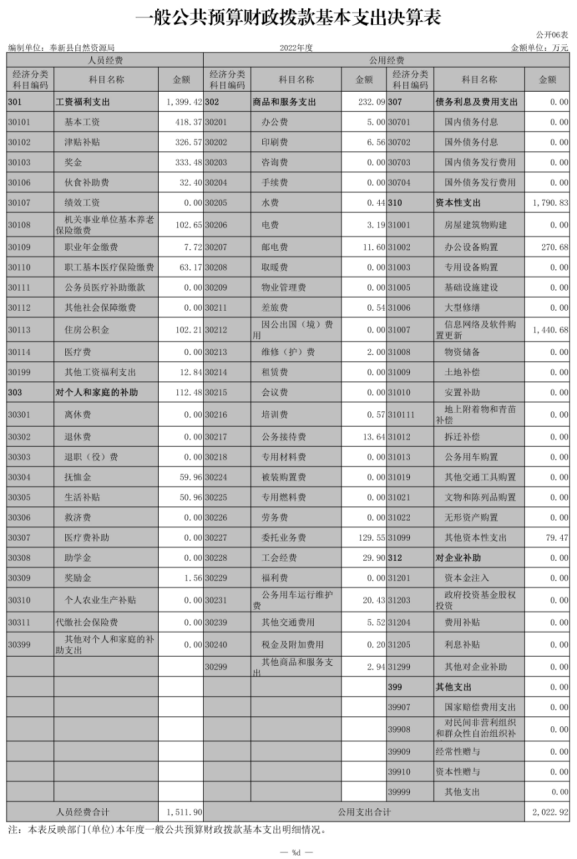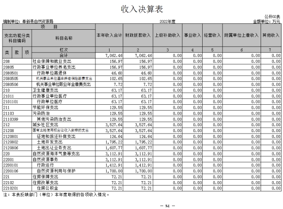納入本套部門決算匯編范圍的單位共1個,包括:奉新縣自然資源局本級。