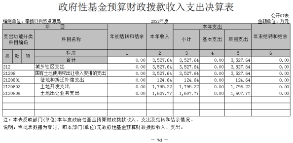 (四)城鄉社區支出年初預算數為3711.89萬元,決算數為 3527.64萬元,完成年初預算的95%,主要原因是:政府性基金支出減少。