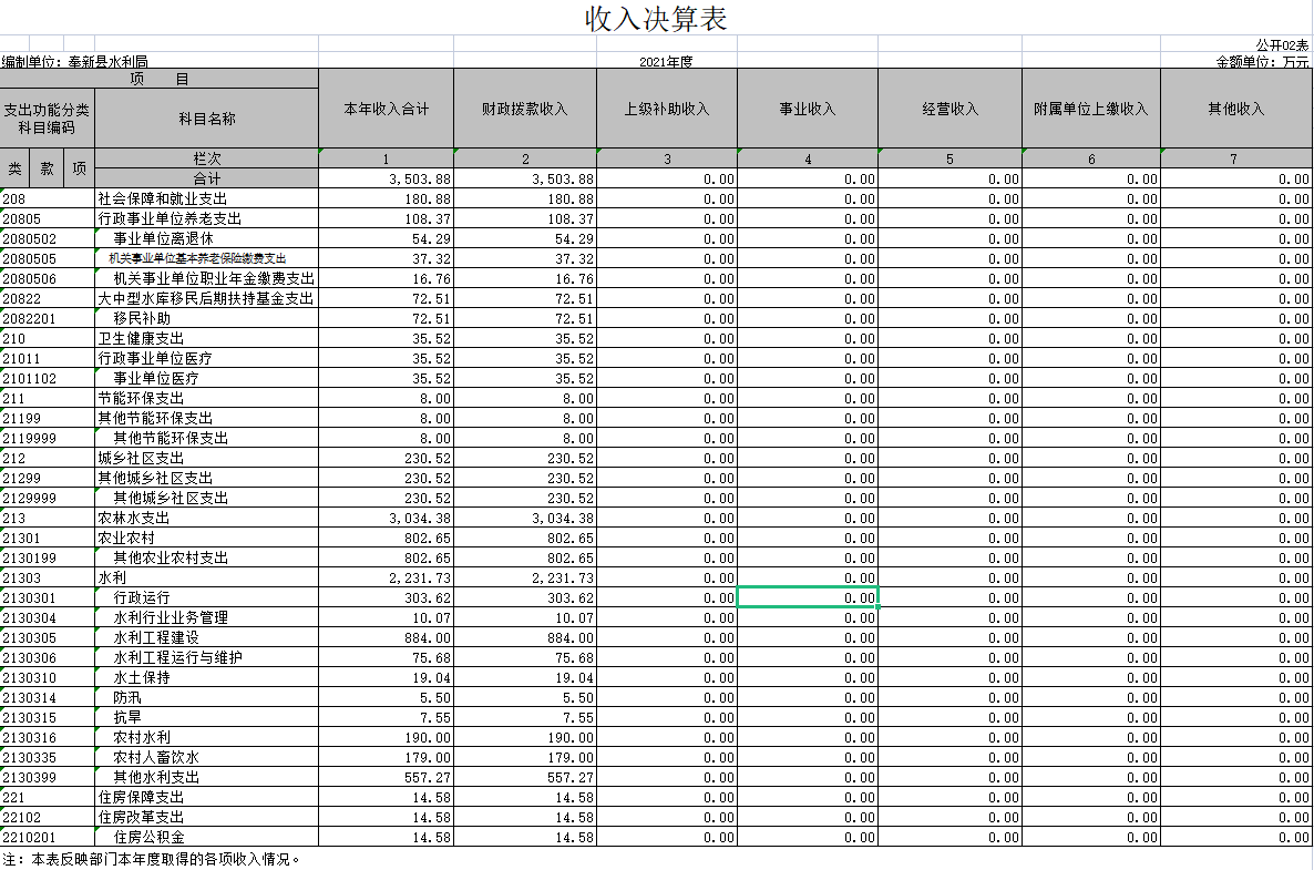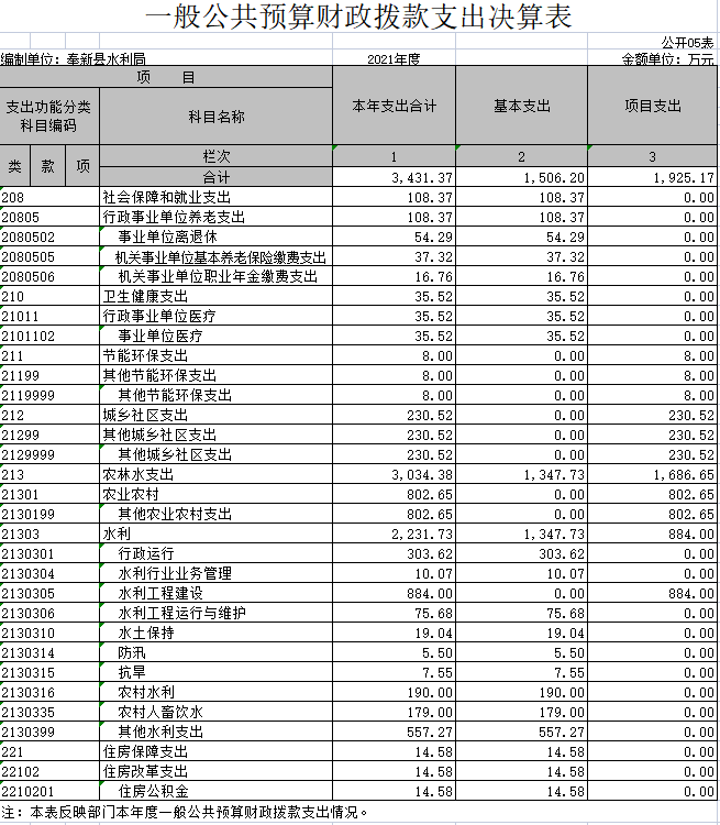 納入本套部門決算匯編范圍的單位1個,包括:奉新縣水利局本級。