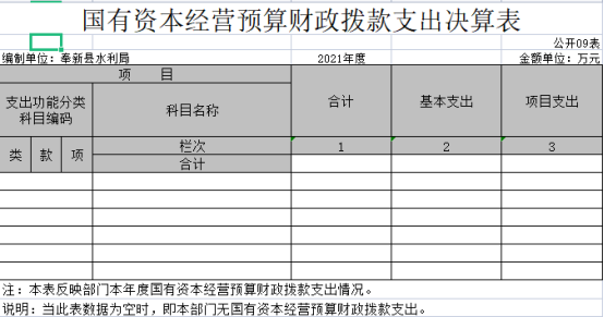 九、國有資本經營預算財政撥款支出決算表