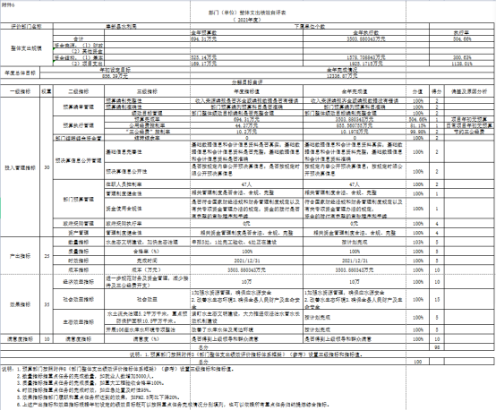 三、綜合評價結論:我部門在目標設定、預算配置、預算執行、預算管理、資產管理、履職效益等方面,總體情況良好。通過本次自評,我局自評得分98 分。
