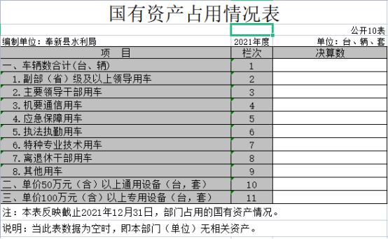 截止2021年12月31日,本部門國有資產占用情況見公開10表《國有資產占用情況表》。其中車輛中的其他用車主要是本部門2021年度無其他用車情況。