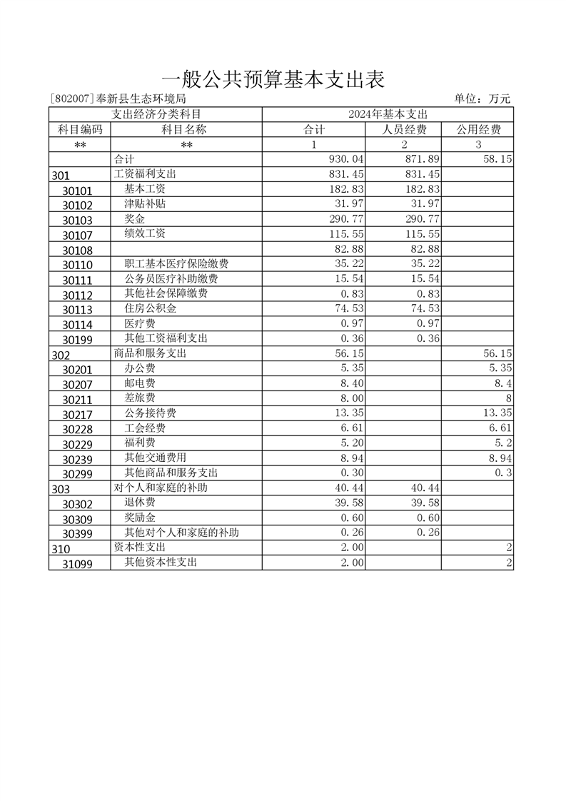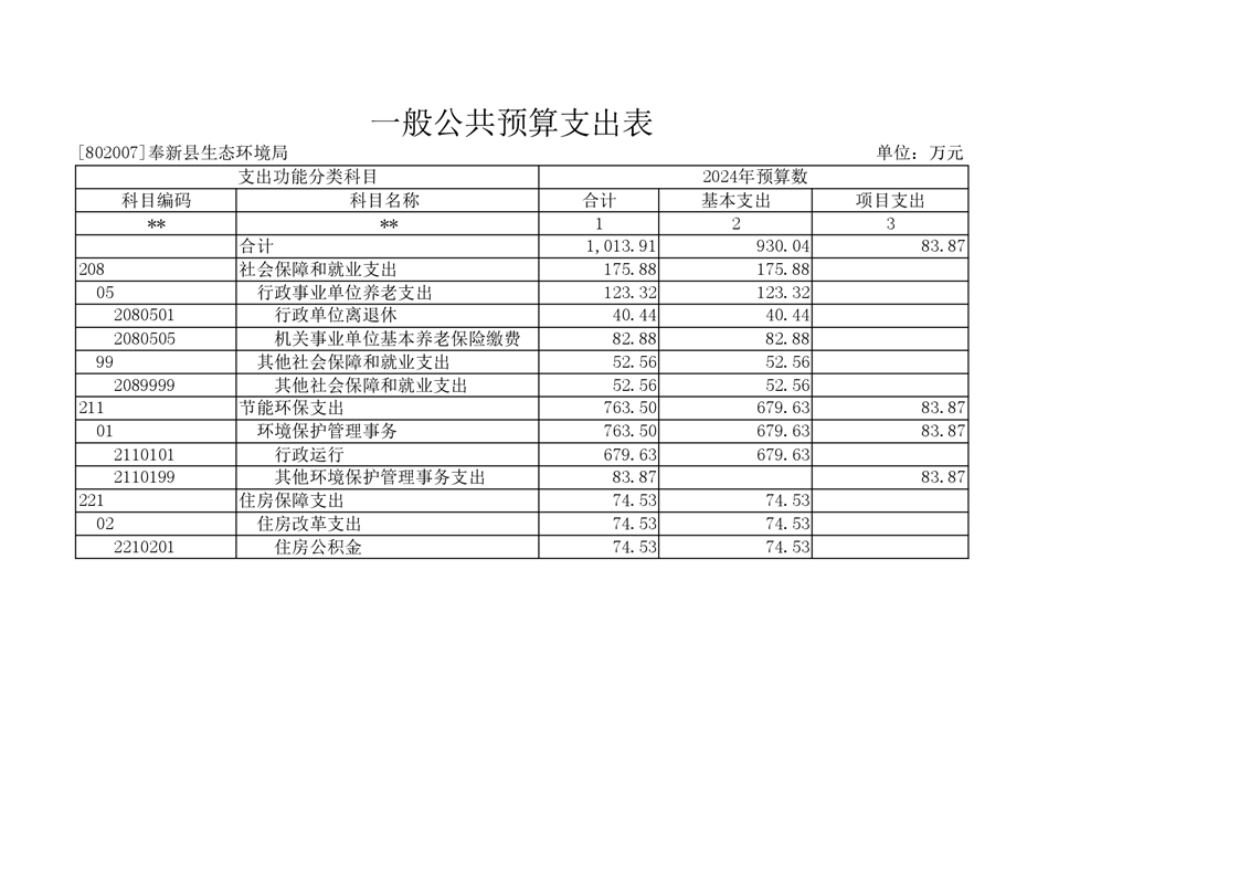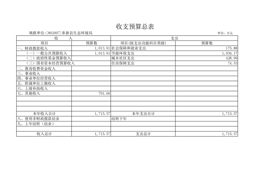 宜春市奉新生態(tài)環(huán)境局2024年單位預(yù)算