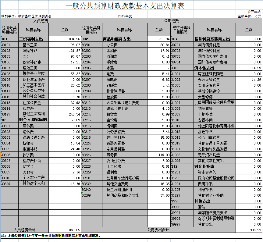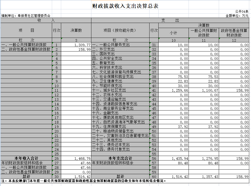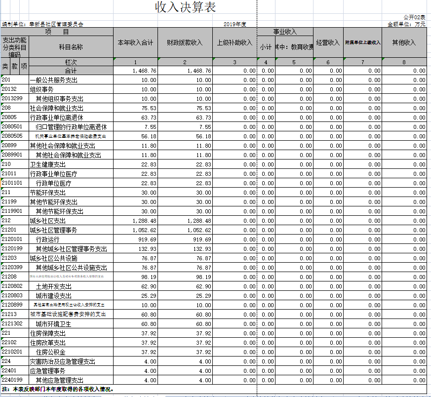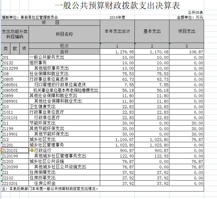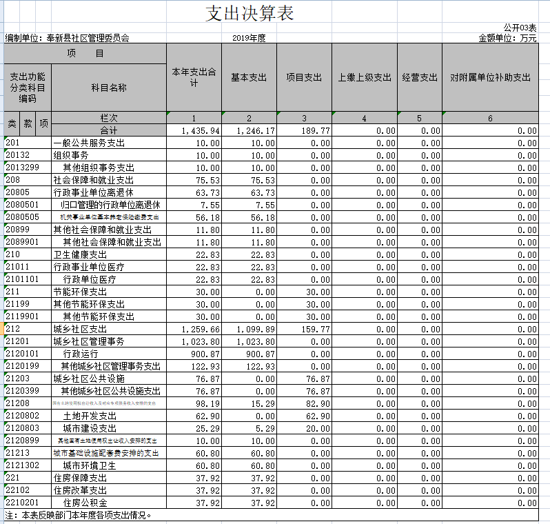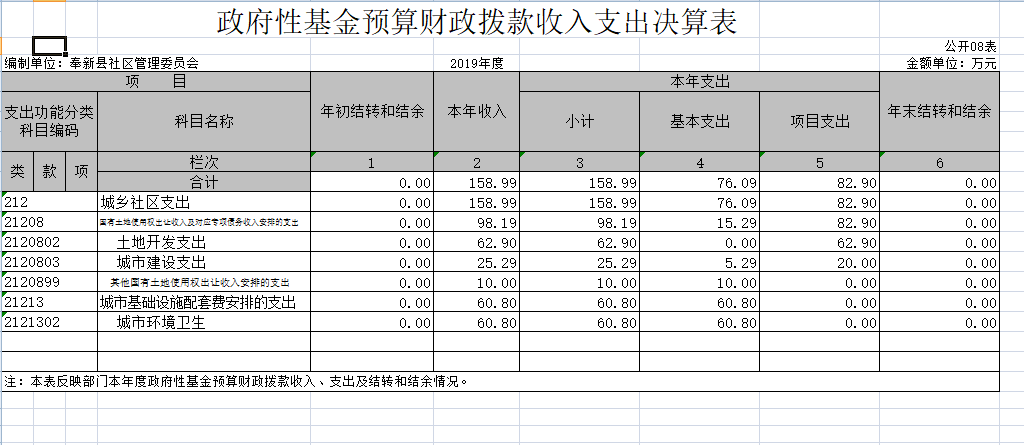 第二部分 奉新縣社區管理委員2019年部門決算表