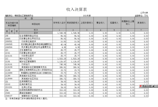 本部門2021年度收入總計1954.21萬元,其中年初結轉和結余4.23萬元,較2020年增加599.9萬元,增長44.30%;本年收入合計1949.98萬元,較2020年增加676.15萬元,增長53.08%,主要原因是:社區2020年底向社會招聘19名社會人才,增加社區社會人才工資績效報酬;增加社區干部(公益性人員)工資,社區辦公場所裝修和辦公采購,增加城填老舊小區改造工程款。
