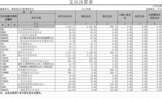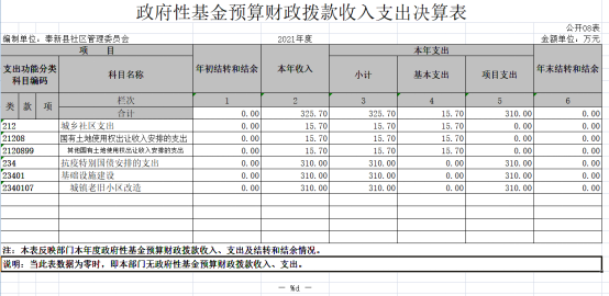 第二部分 奉新縣社區管理委員會2021年度部門決算表