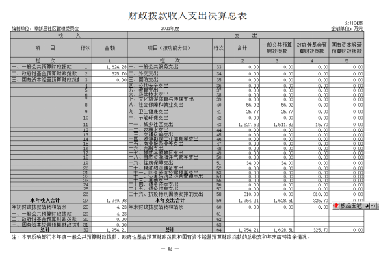 本部門2021年度支出總計 1954.21萬元,其中本年支出合計1954.21萬元,較2020年增加599.9 萬元,增長44.30 %,主要原因是:社區2020年底向社會招聘19名社會人才,增加社區社會人才工資績效報酬;增加社區干部(公益性人員)工資,增加城填老舊小區改造工程款;年末結轉和結余0萬元,較2020年下降4.23萬元,下降100%,主要原因是:沒有結余。