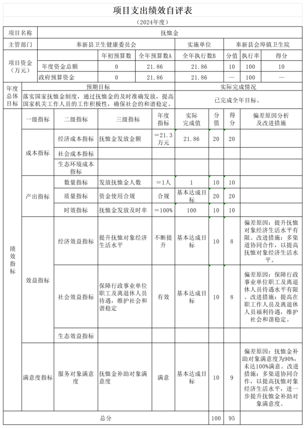 本單位“撫恤金”項目支出績效自評結果如下: