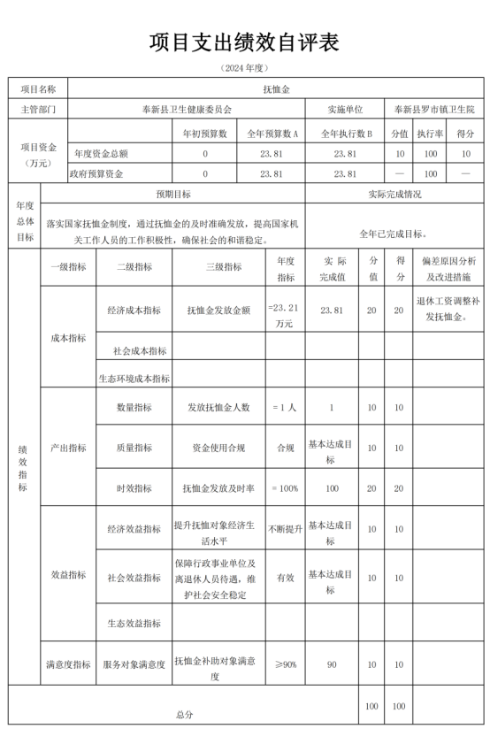 根據預算績效管理要求,我單位組織對納入2024年度單位預算范圍的二級項目1個全面開展績效自評,共涉及資金23.81萬元,占項目支出總額的100%。其中,1個項目評價結果為“優”,0個項目評價結果為“良”,0個項目評價結果為“中”,0個項目評價結果為“差”。