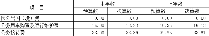 (三)公務(wù)用車購置及運(yùn)行維護(hù)費(fèi)支出13.23萬元,其中公務(wù)用車運(yùn)行維護(hù)費(fèi)支出年初預(yù)算數(shù)為16.00萬元,決算數(shù)為13.23萬元,完成預(yù)算的82.7%,決算數(shù)較年初預(yù)算數(shù)減少的主要原因是:經(jīng)費(fèi)縮減。