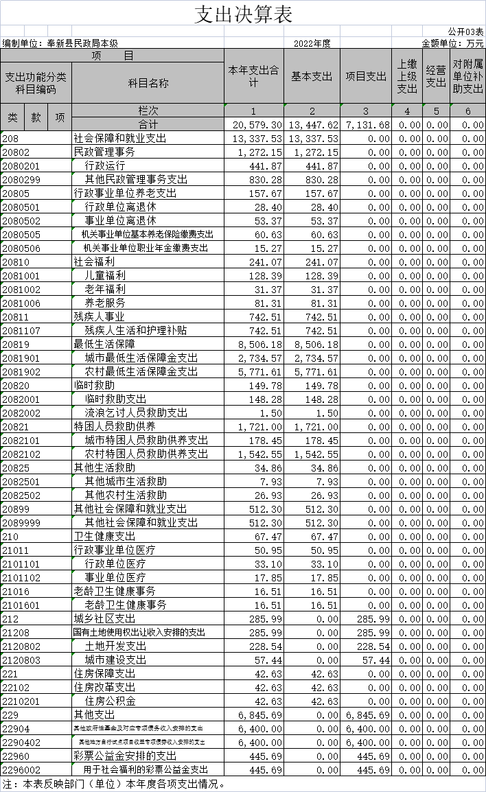 本單位2022年度支出總計20579.3萬元,其中本年支出合計20579.3萬元,較2021年增加4824.21萬元,增長30.6%,主要原因是:奉新縣上富殯儀館項目和奉新縣鄉鎮公益性公墓建設提升改造項目等支出增加;年末結轉和結余0萬元,較2021年增加0萬元,增長0 %,主要原因是:年初和年末結轉和結余0萬元。