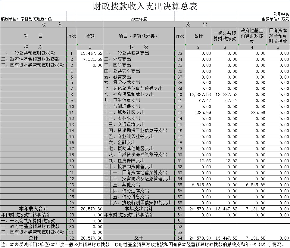四、財政撥款收入支出決算總表