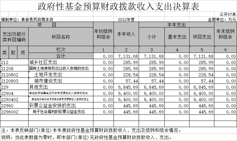七、政府性基金預算財政撥款收入支出決算表
