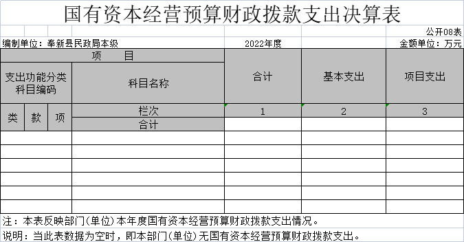 八、國有資本經營預算財政撥款支出決算表