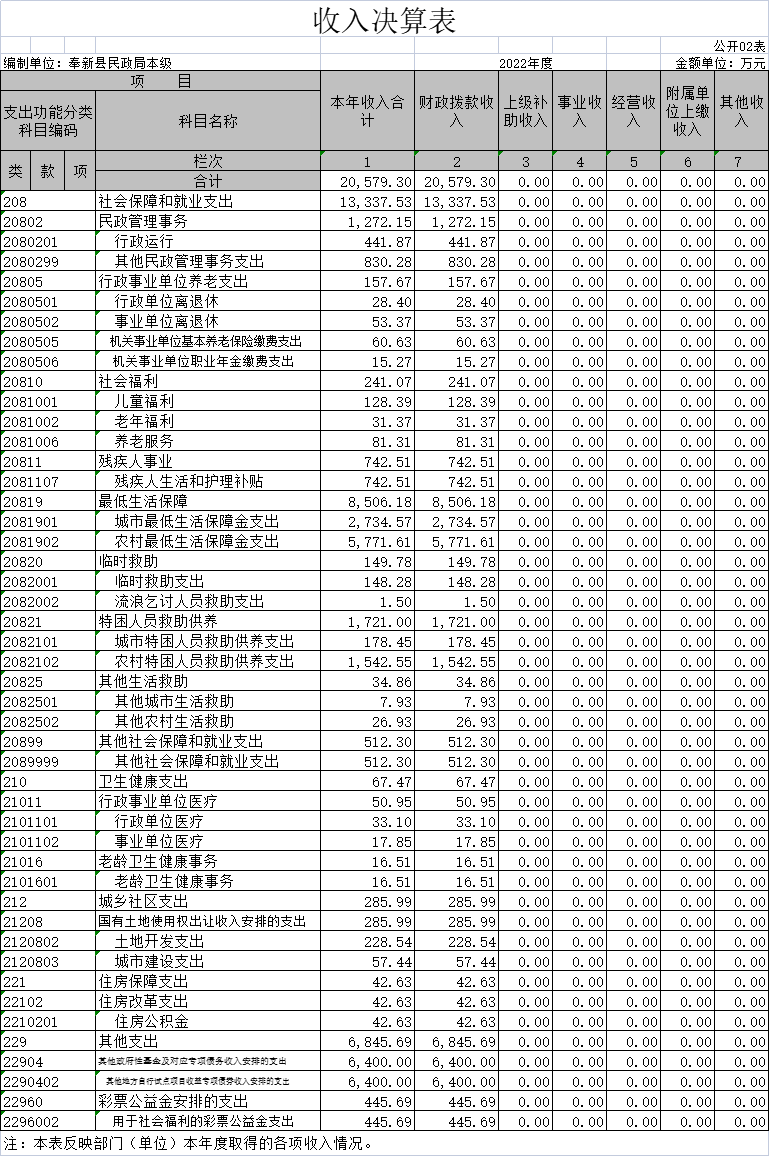 二、收入決算表