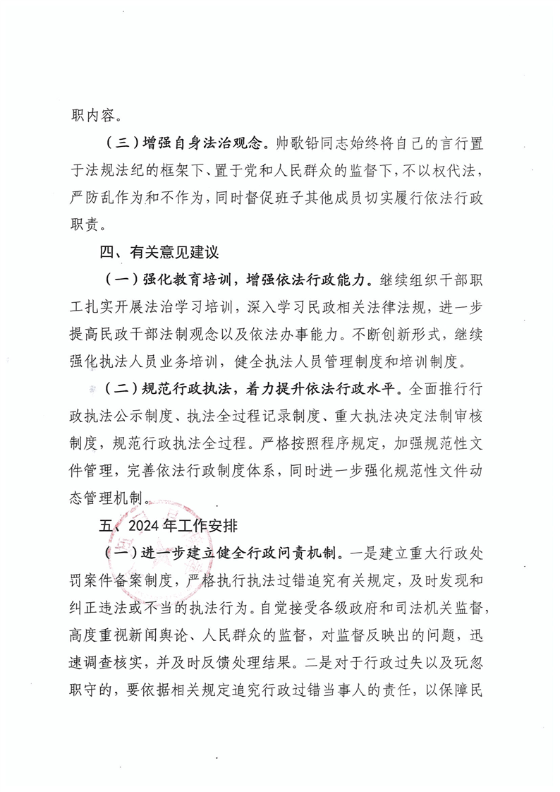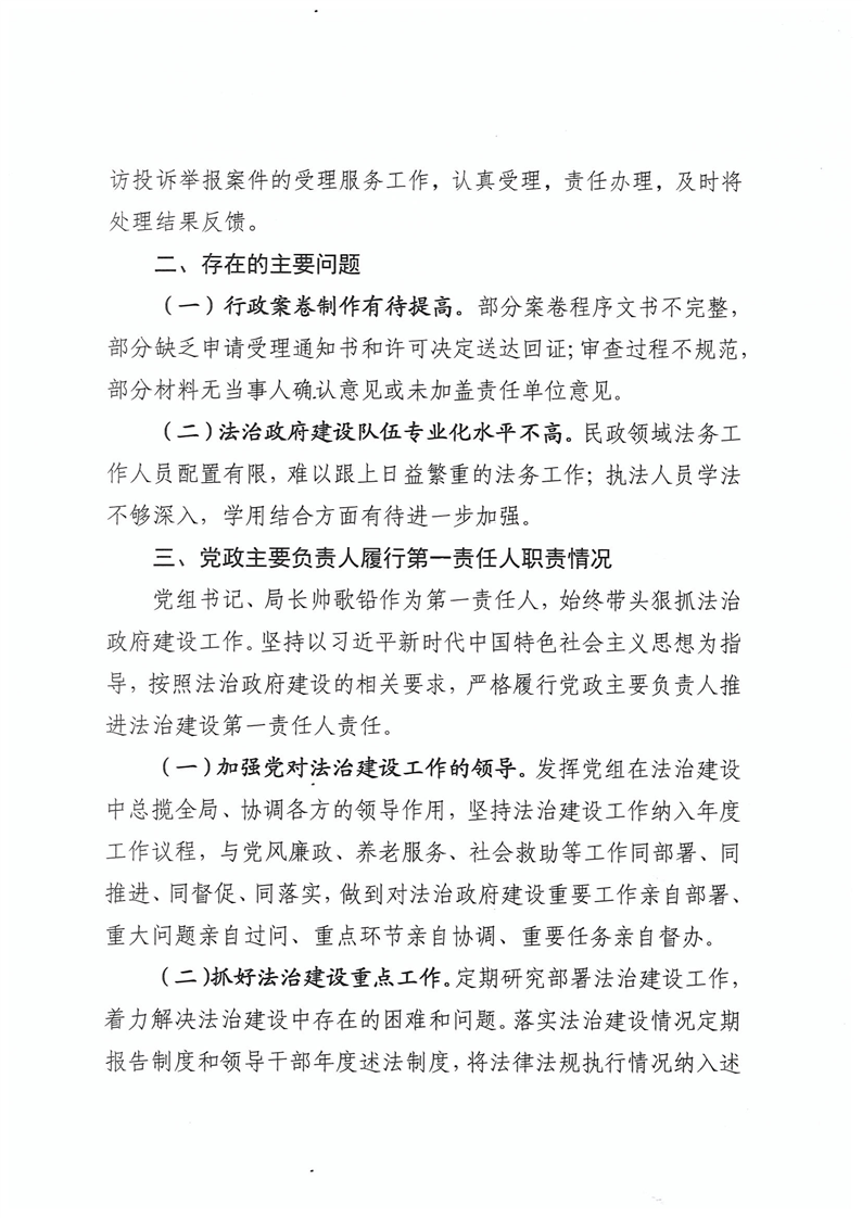 您當前所在位置: 首頁>政府信息公開>政府部門信息公開>縣政府各部門信息公開目錄>縣民政局>法定主動公開內容>其他法定公開信息>法治政府建設年度報告