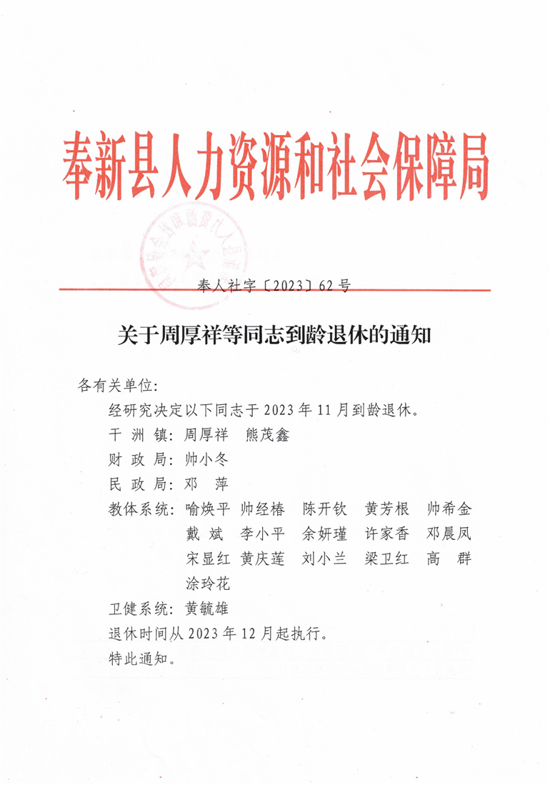 關于周厚祥等同志到齡退休的通知