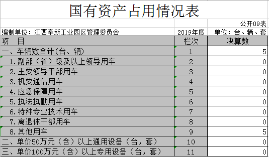 九、國有資產占用情況表