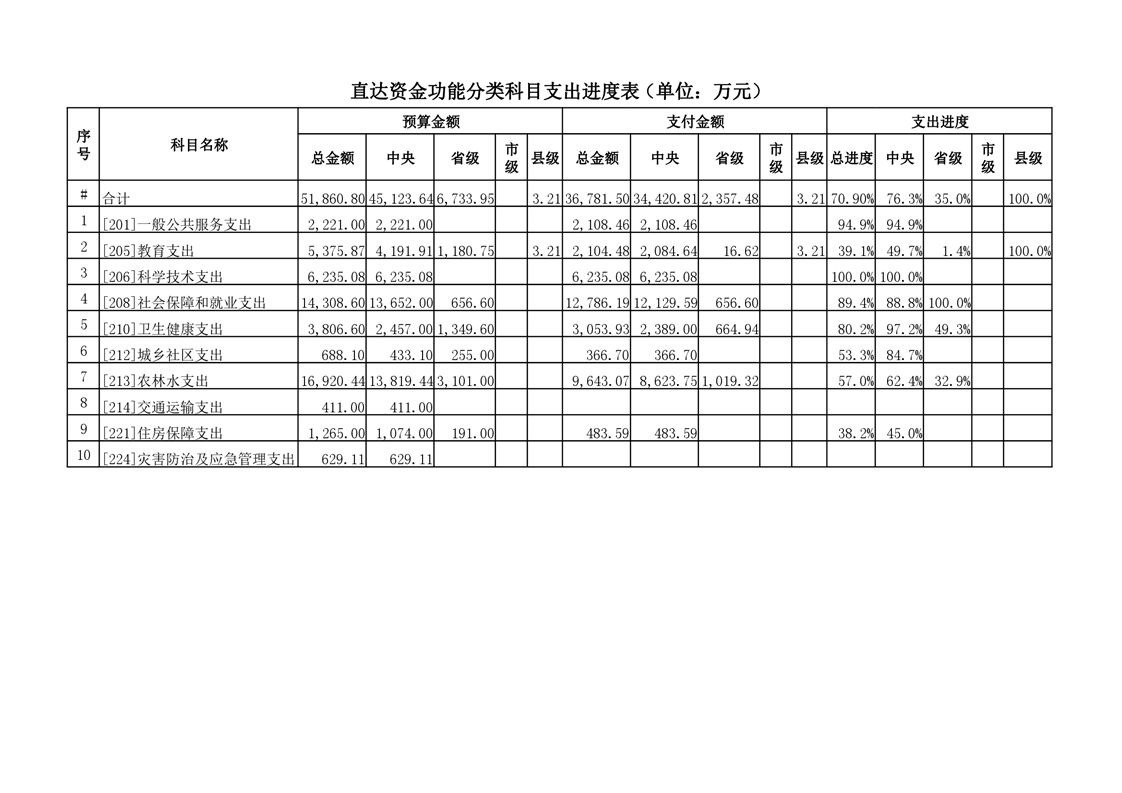 截至2024年6月30日,全縣納入直達資金監控系統的資金總量53056.5萬元,已分配資金51860.8萬元,已支付資金36781.5萬元,支付進度為70.9%。全縣直達資金分項目分地區執行情況如下: