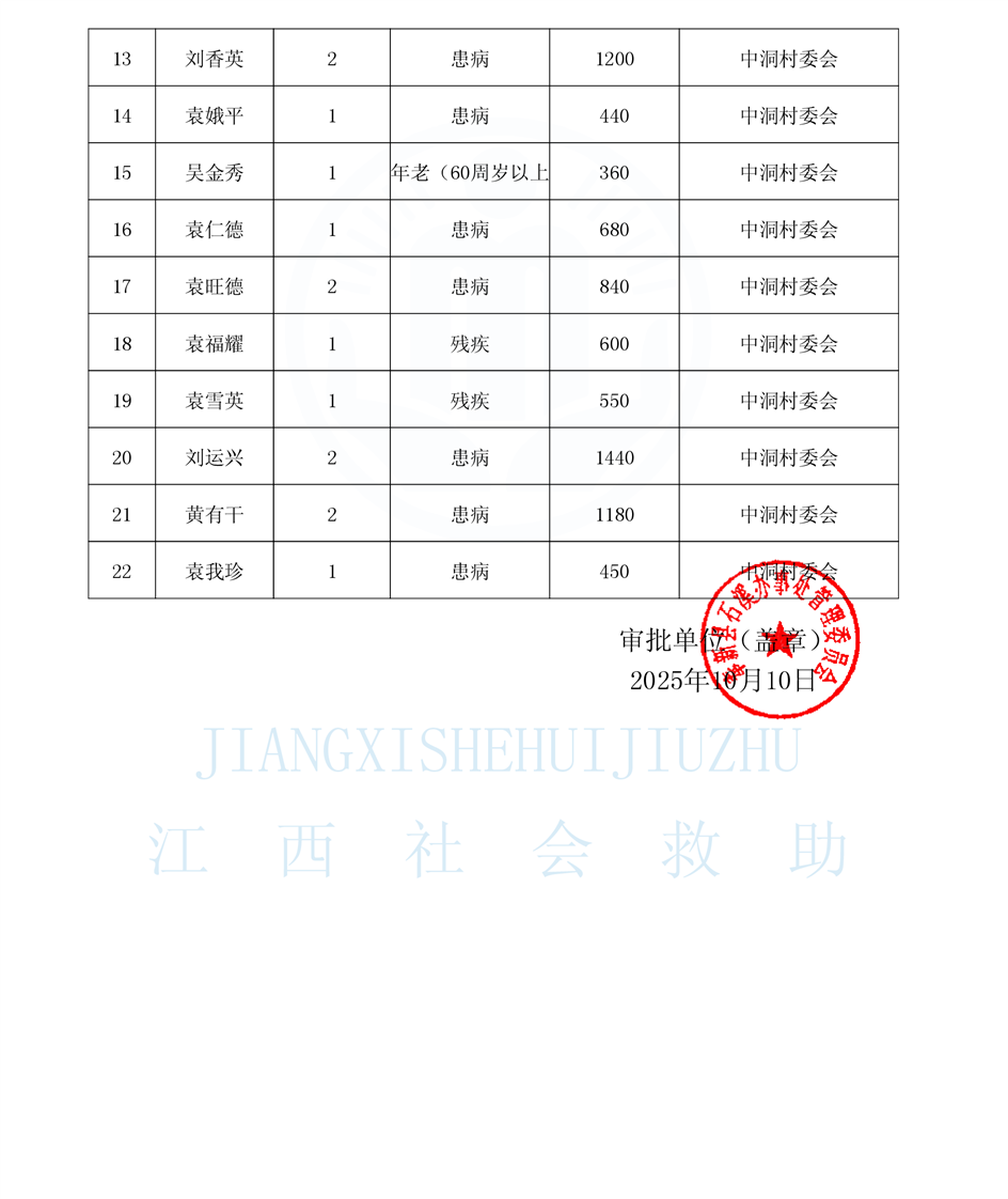 2025年10月中洞村低保公示名單
