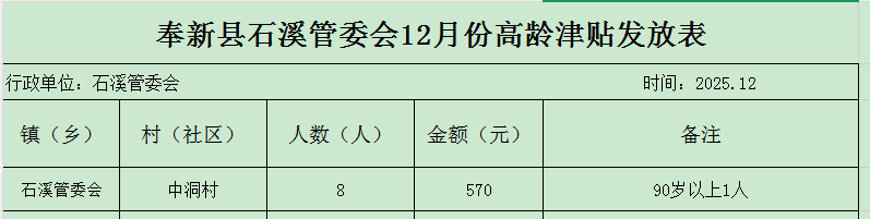 【高齡津貼】石溪管委會中洞村2025年12月份高齡津貼發(fā)放表