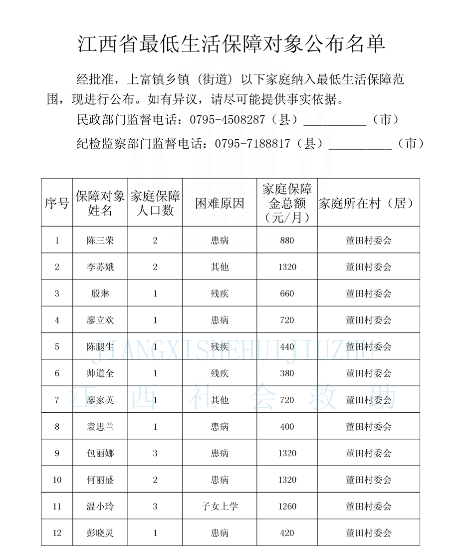 【社會救助】2025年10月份上富鎮農村低保發放標準和名單