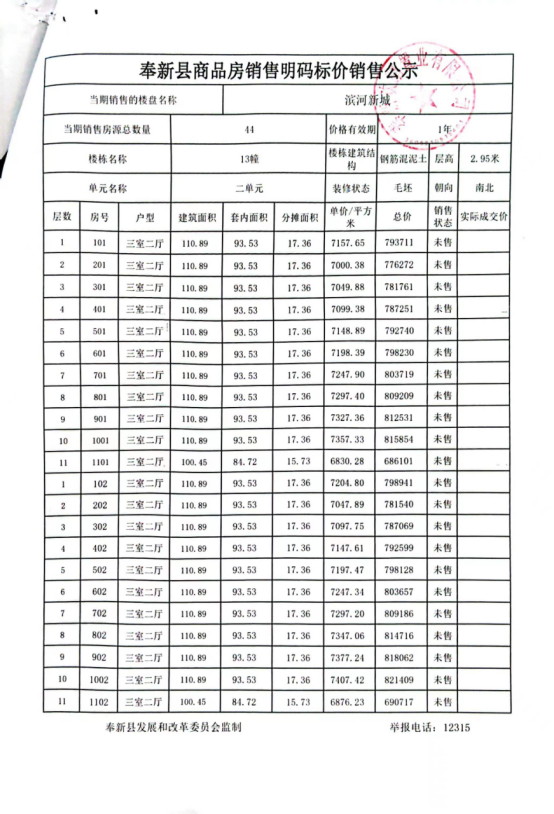 濱河新城13號樓預(yù)售許可證和銷售價格公示