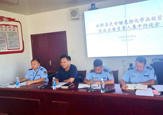 為進一步加強危險化學品經營安全監管,近日,奉新縣應急管理局對無倉儲危險化學品經營企業主要負責人開展集中約談, 縣應急管理局黨委書記、局長陳兆虎出席會議,應急管理局危化股相關人員和全縣16家無倉儲經營企業主要負責人參加集中約談會。