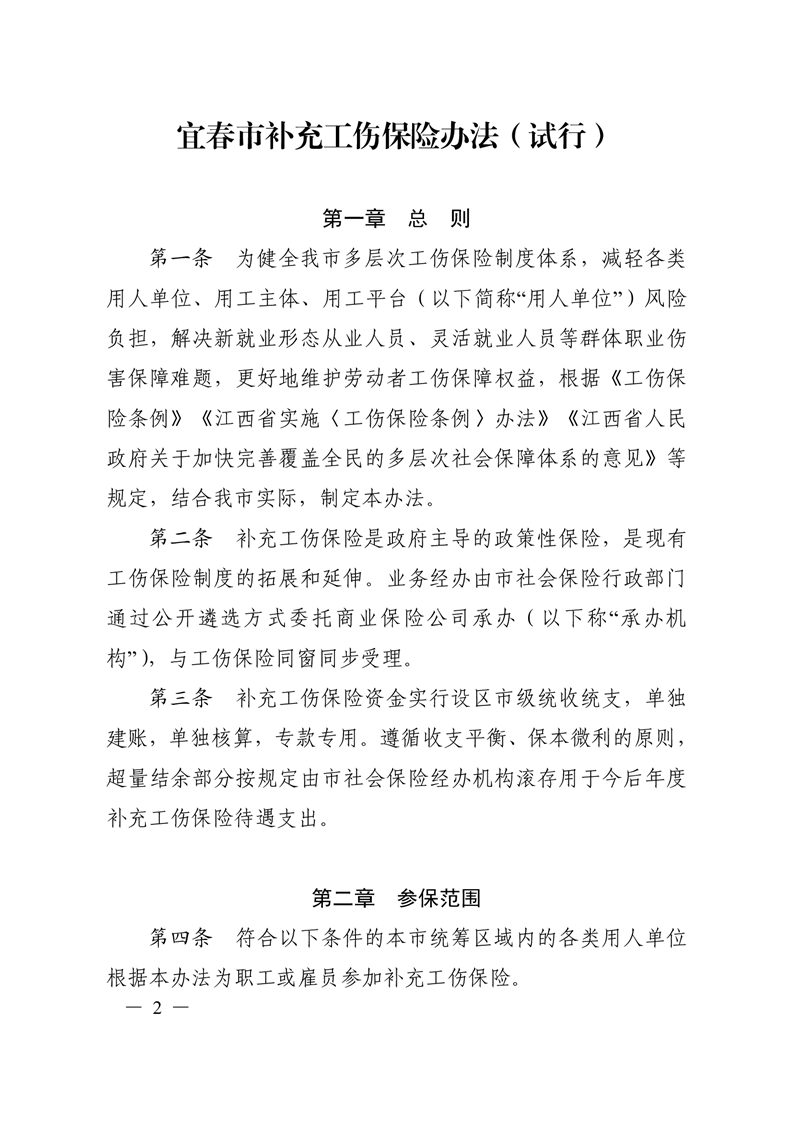 宜府發〔2025〕6號宜春市人民政府關于印發《宜春市補充工傷保險辦法(試行)》的通知