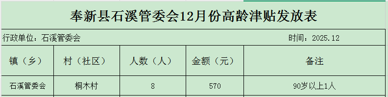 【高齡津貼】石溪管委會桐木村2025年12月份高齡津貼發放表